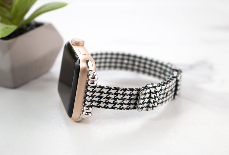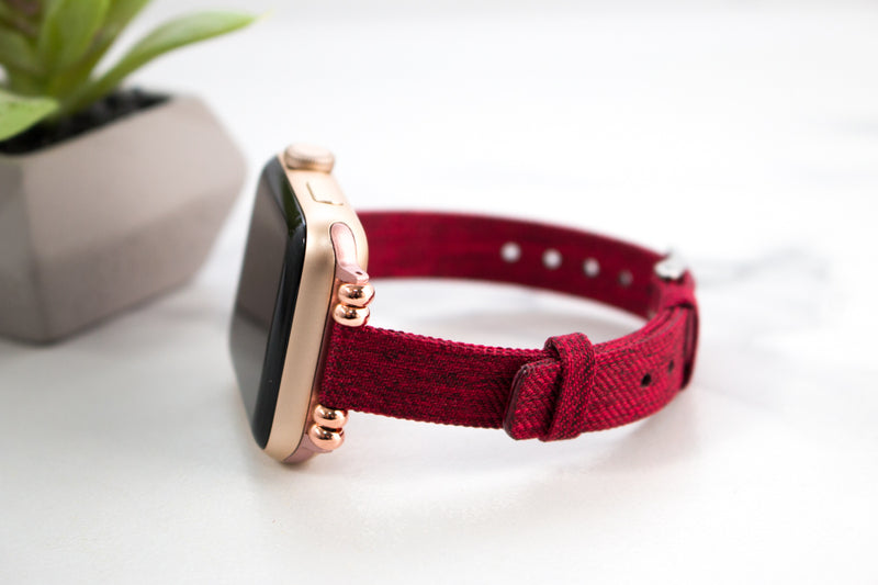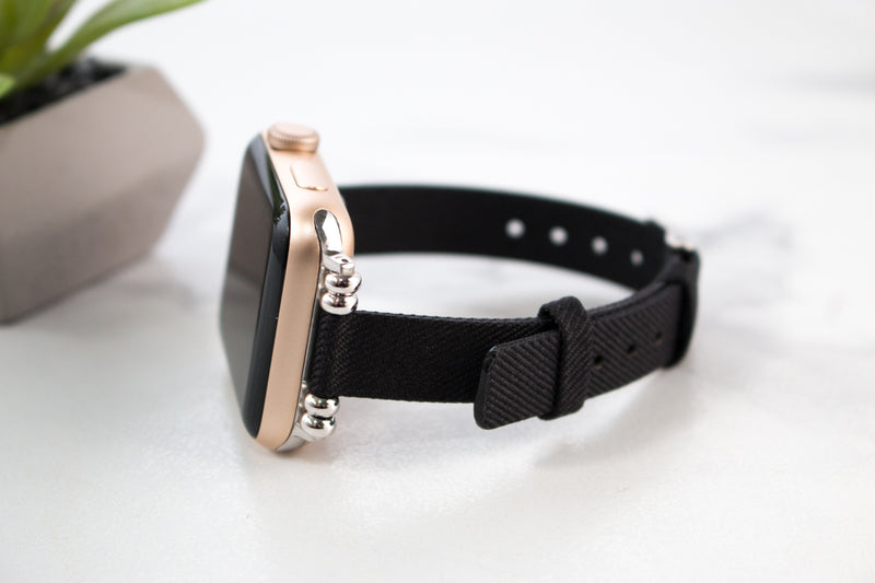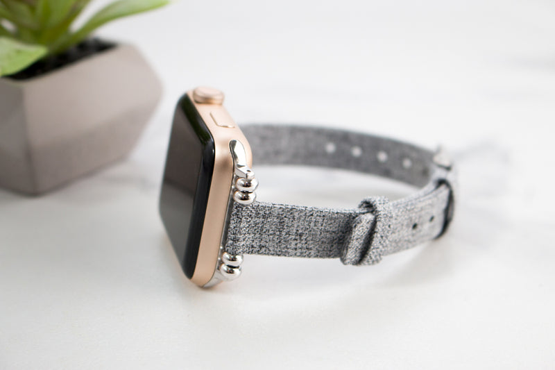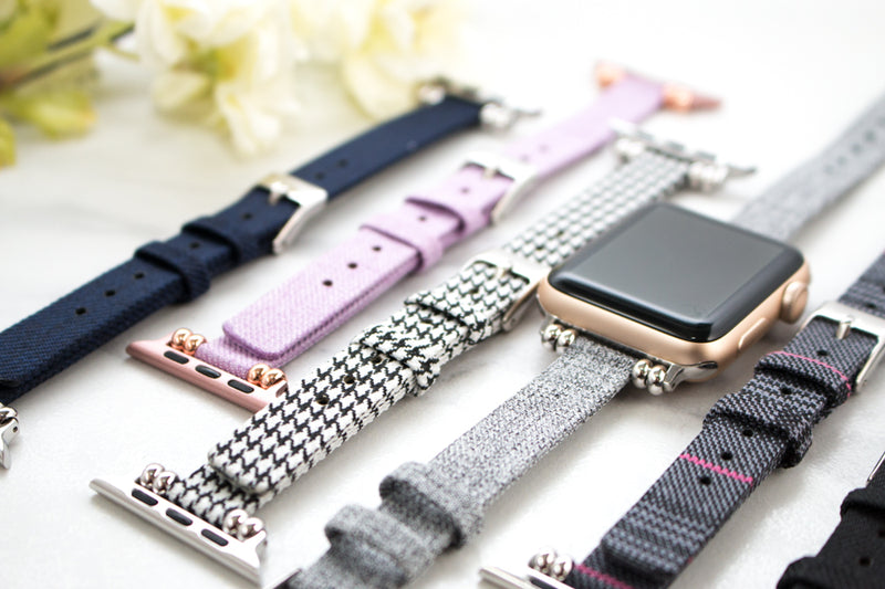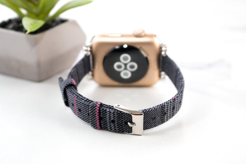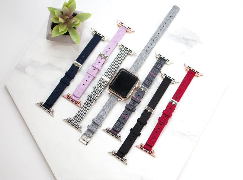 Wear your apple watch the hipster way with our amazingly hip Stacia Canvas Apple Watch Band! This beautiful watch band is made out of a thin canvas design and will adjust to fit all wrist sizes.