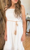Our beautiful Boho Tassel Belt is absolutely stunning! It's a little hip and little bohemian all in one! This beautiful belts can be worn with your favorite jeans or around your waist while wearing that little dress of yours, a flowing kimono or a cute jumpsuit! Your options are endless. Be creative and let your hipster style out!