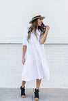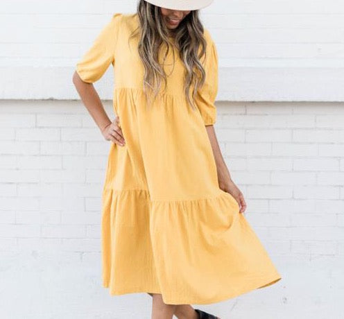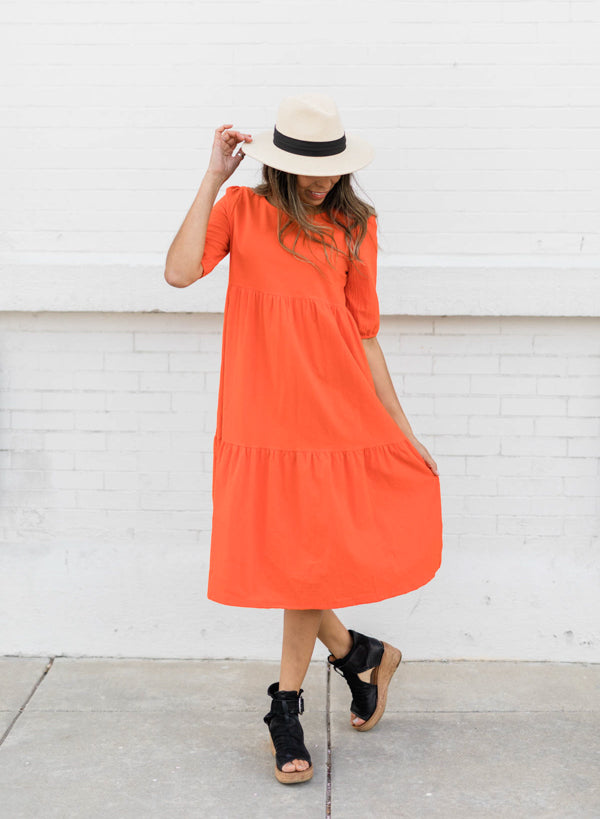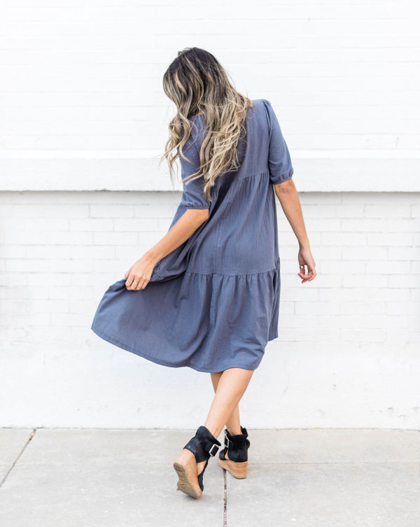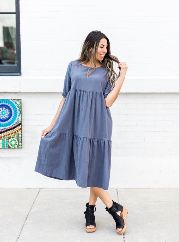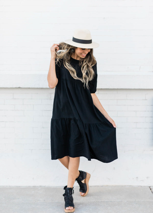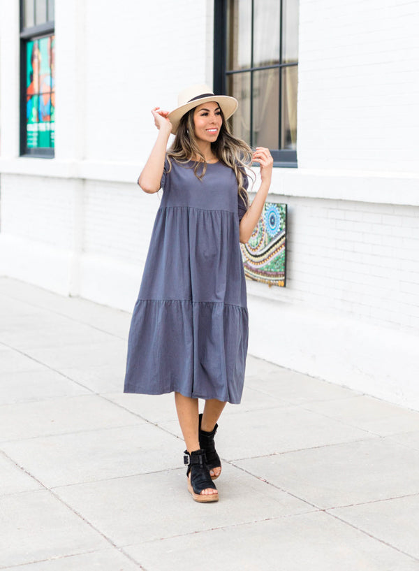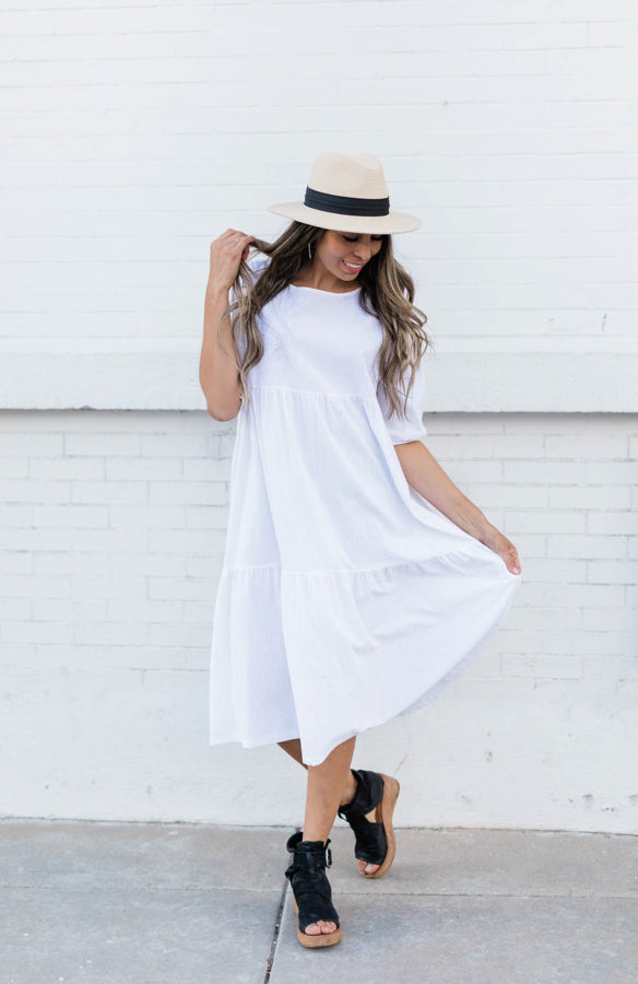 We are smitten with our Anna Cotton Tiered Dress!  From the breezy flow to the round neckline, to the tiered style, this dress is simply perfect!  It will be your go-to dress for anything.  From daytime to night time, to the beach, it's that versatile!