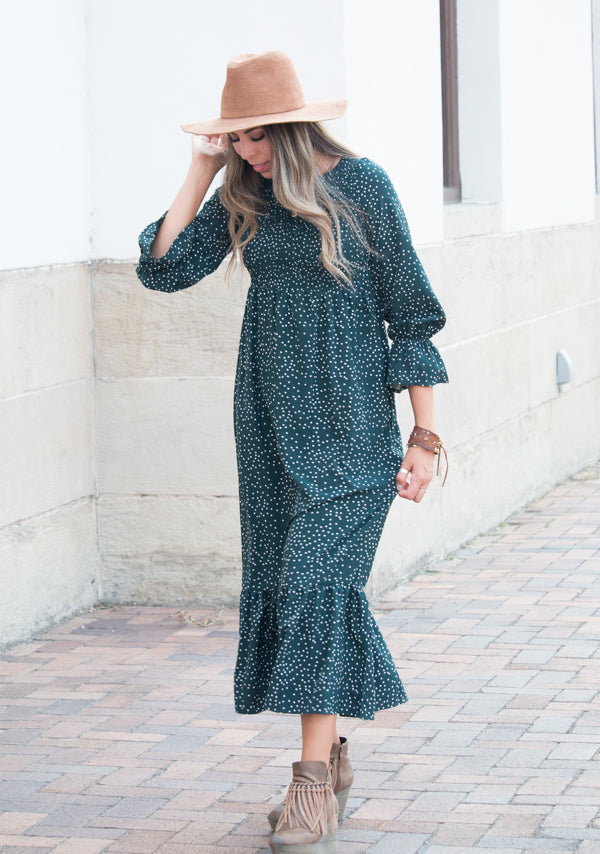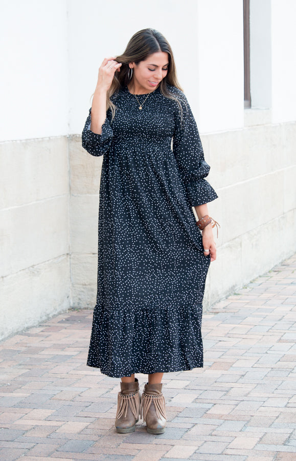 We can't get enough of our beautiful Lani Dress! This amazing dress features a smocked bodice with cinched bell sleeves. The skirt flows with ease with a beautiful thick ruffled hem. This dress is a must!