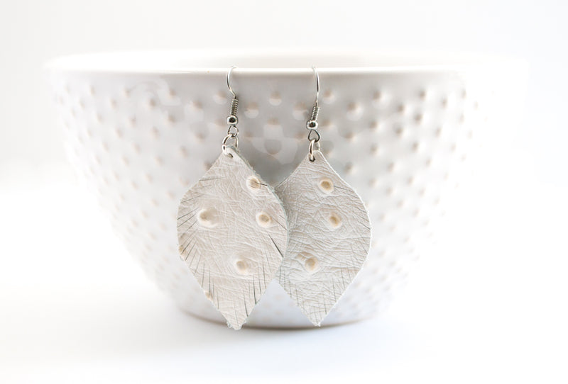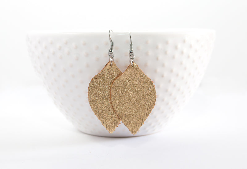 Our beautiful collection of genuine Leather Feather Earrings, where simplicity and beauty come together in perfect fashion!  Made out of genuine leather, a feathered edge detailing and each with its own pattern, these earrings are perfect for any occasion!