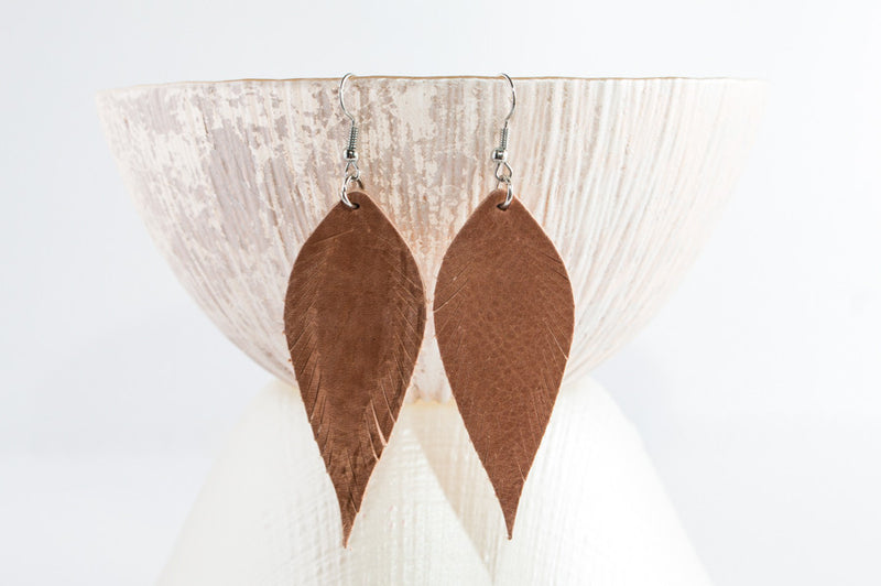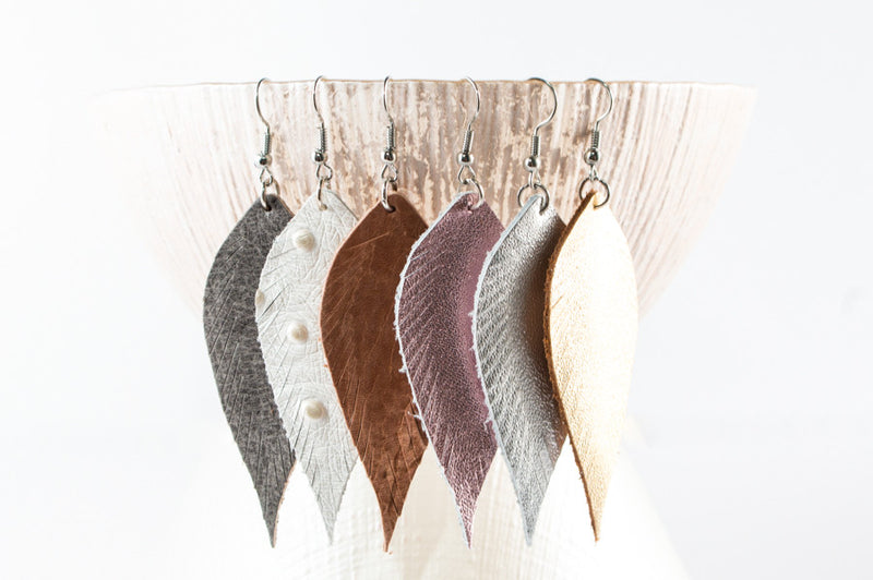 Our beautiful collection of genuine Leather Long Feathered Earrings, where simplicity and beauty come together in perfect fashion! Made out of genuine leather, a feathered edge detailing and each with its own pattern, these earrings are perfect for any occasion!