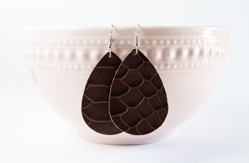 Our beautiful collection of genuine Leather Tear Drop Earrings, where simplicity and beauty come together in perfect fashion! Made out of genuine leather, and each with it's own pattern, these earrings are perfect for any occasion! And, they are incredibly light weight, you won't even know they are there!