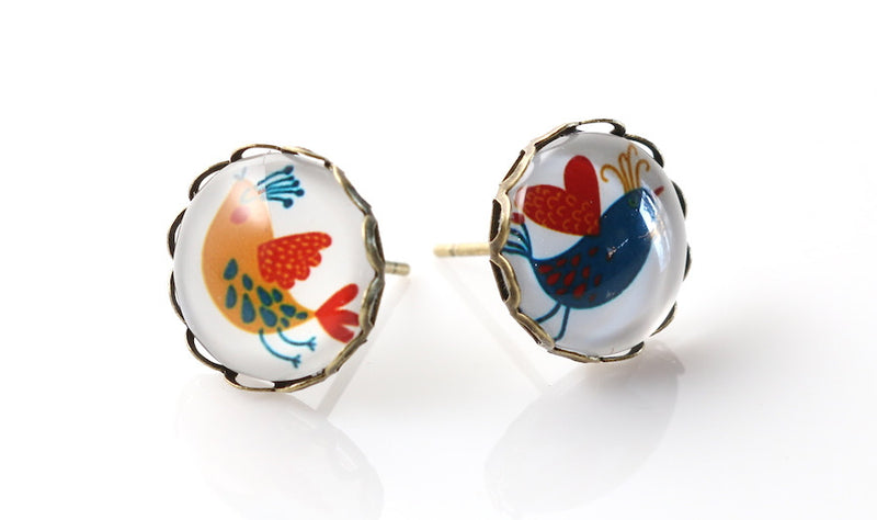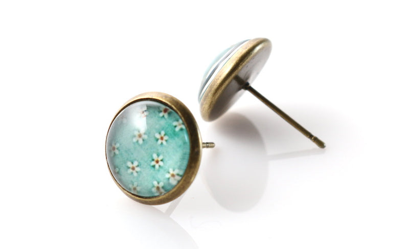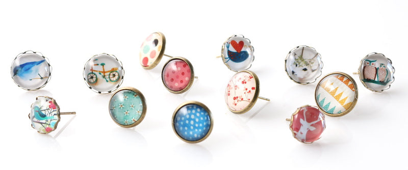 We are excited to bring you this beautiful collection of our whimsical vintage glass earrings! These handmade vintage earrings are made of glass with the backs and the posts of the earrings made out of copper and plated with bronze. They are simply beautiful!