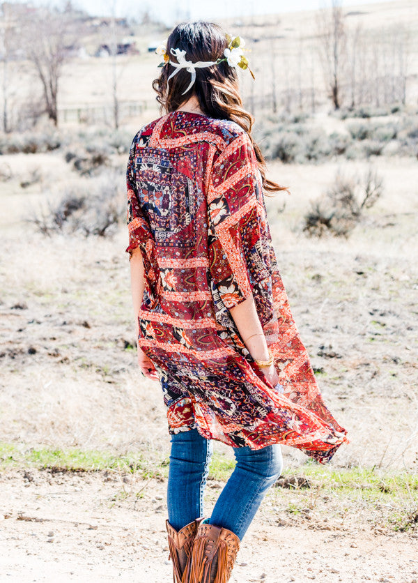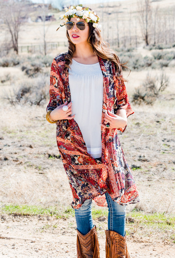 Red Boho Floral Kimono