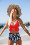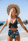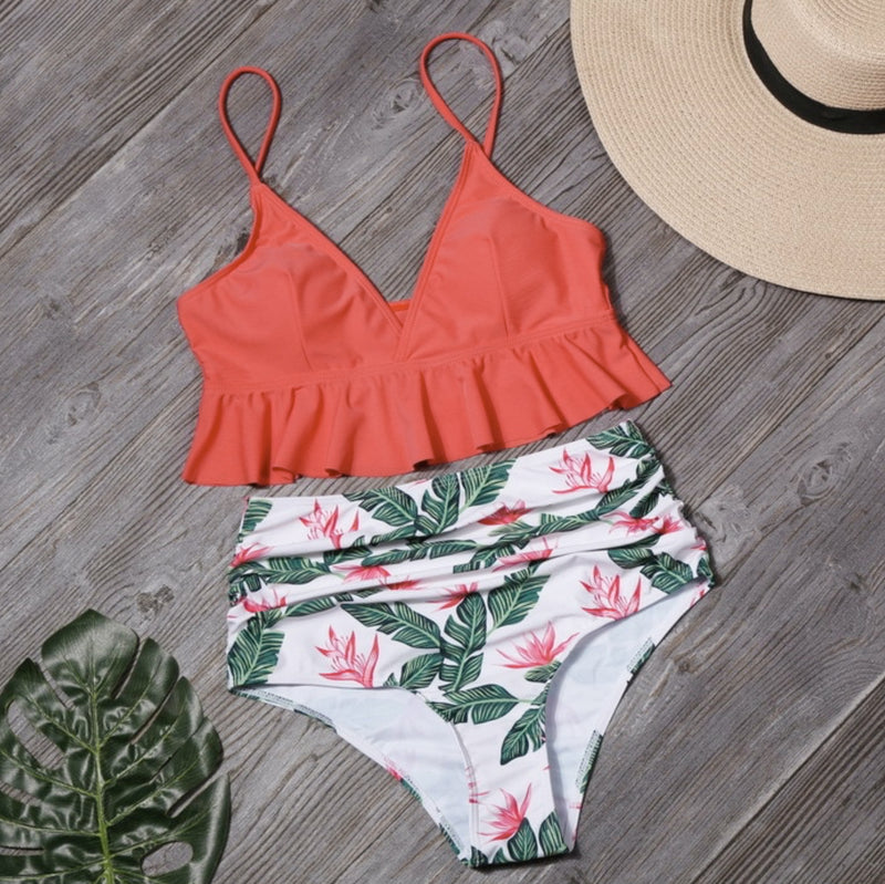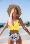 Flirty and so cute, our beautiful Kirra High-Waisted Bikini is a must-have this summer! It boasts a flattering high-waisted bottom and a beautiful ruffled v-neck neckline top with mixed florals, polka dots, and solid print pieces.