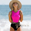 Fun and hip, our sassy Nydia One Piece Swimsuit is a must-have this summer! This swimsuit features a patchwork design with a high waist bottom and a front waist tie that you will love!
