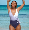 Fun and classy, our Wrap-Front One-Piece Swimsuit is perfect for your next beach adventure. It features a plunging neckline and a tie waist. This swimsuit is flattering for everybody. It is simply beautiful!