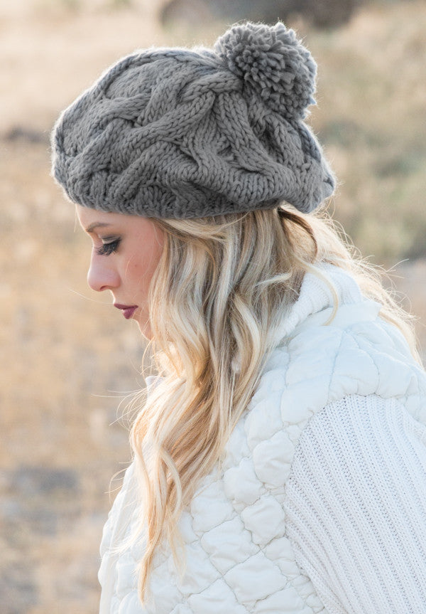We can't get enough of our gorgeous Chunky Knit Pom Pom Beanie! It's thick knitted yarn and full pom pom are just what every girl needs to look stylish and stay warm and cozy! Finish off your hip style this season with this amazing lush hat!