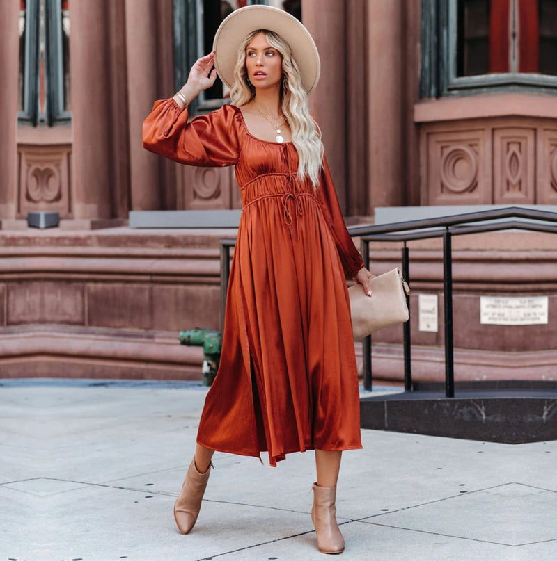We can't get enough of our beautiful Cora Dress! This amazing dress features a drop square gathered neckline with long balloon sleeves. The skirt flows with ease with a beautiful double gathered waistline. We are in LOVE!!