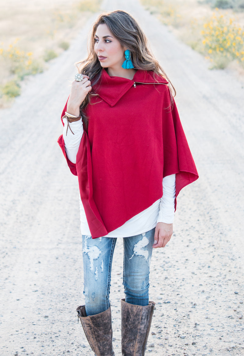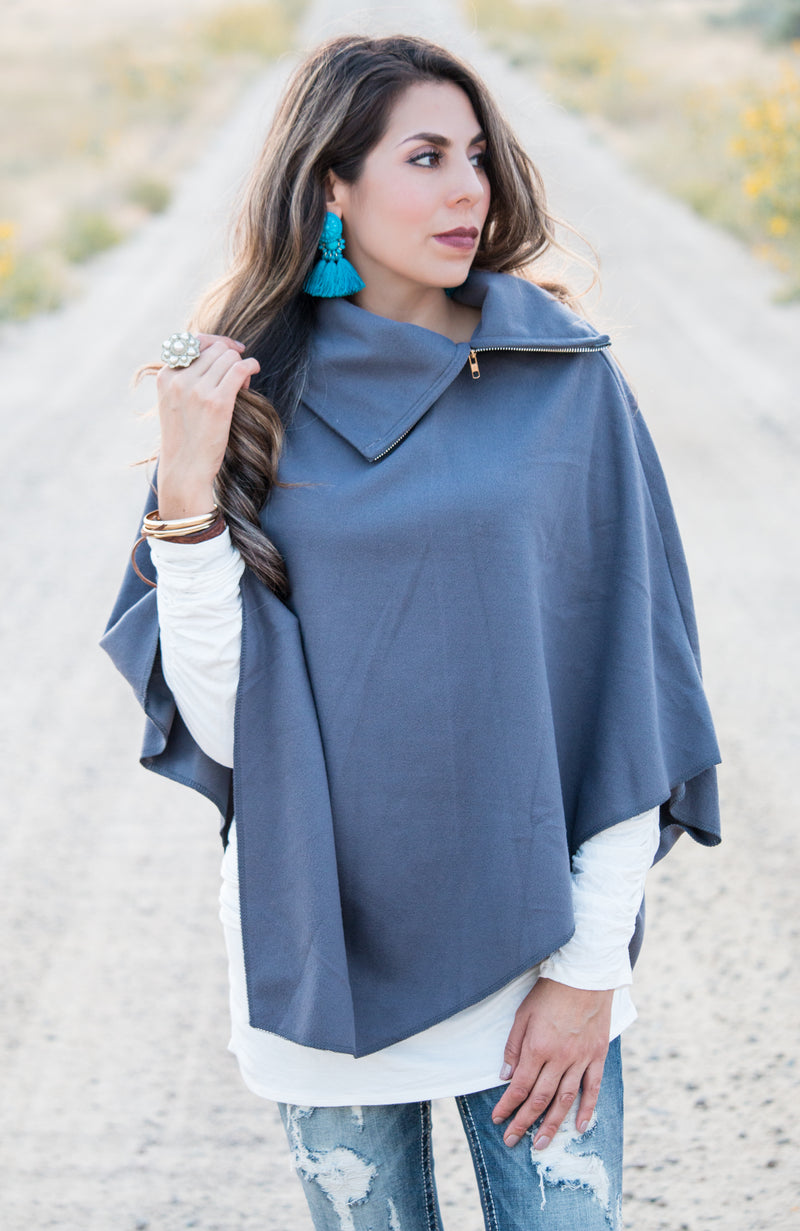 Dress yourself in pure luxury this season with our beautifully hip Fleece Poncho! This amazing poncho will keep you warm and cozy all season long! Dressed up or down, it will complete any outfit! And that amazing full zippered collar?! It is simply perfect!