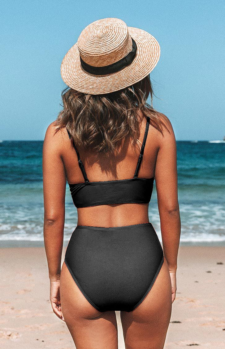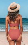 Fun and hip, our Kayla Twist Bikini puts a fun twist on this swimsuit. The bikini top has a front twist detailing and the bottoms boast a flattering high waist. This will be your go-to bikini this summer!