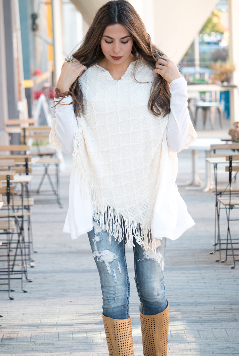 Dress yourself in style with our amazing Knit Poncho! Made from a soft knit material, this beautiful poncho will not disappoint! It's a gorgeous layering piece that will complete any outfit! It is simply beautiful!