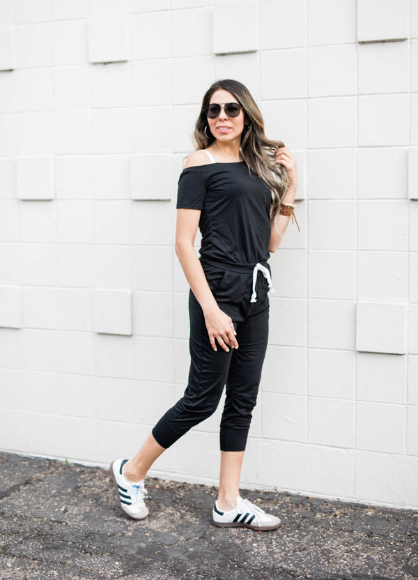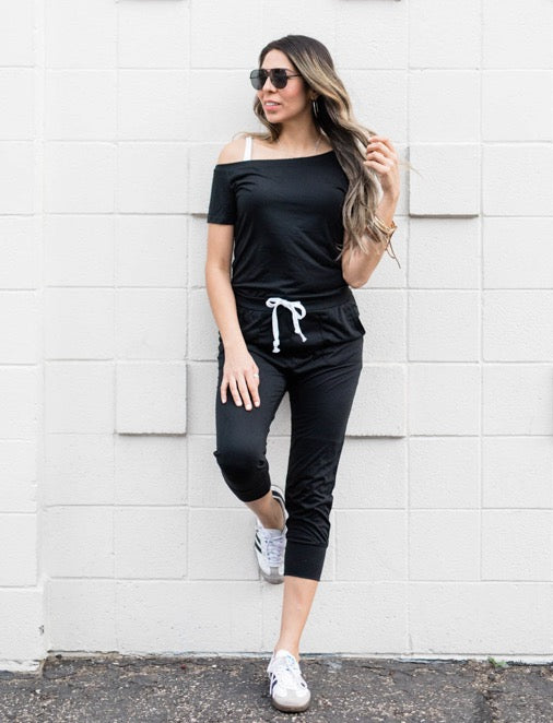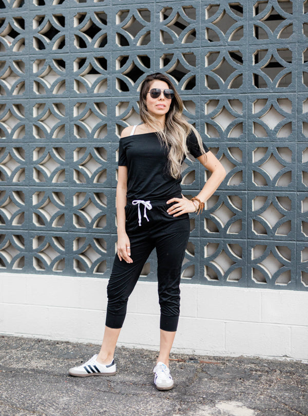 We can't get enough of our Mila Off-Shoulder Jumper! This hip jumper features an off-shoulder neckline for a fresh summer vibe. The soft comfortable fabric and drawstring waist make this jumper a must-have! It's perfect for running around town and for a night out! You can't go wrong with this amazing jumper!