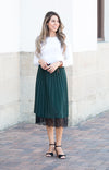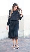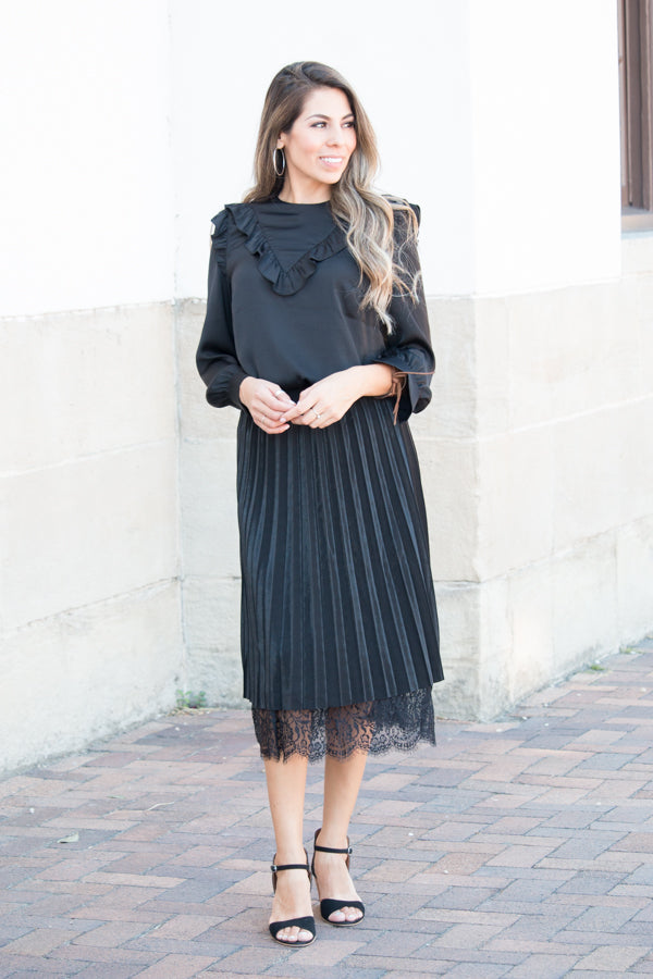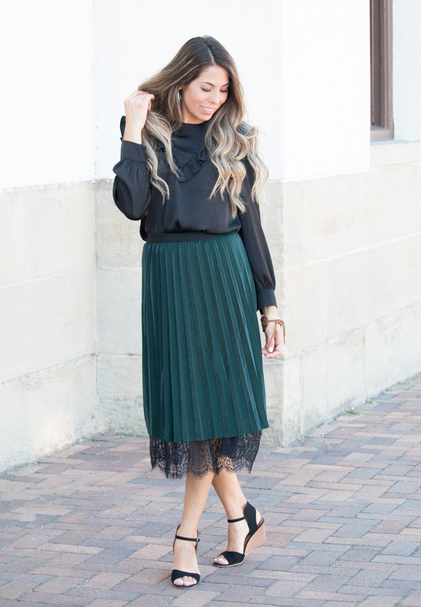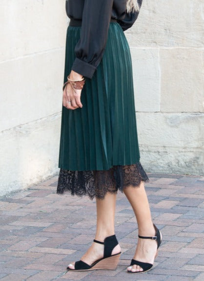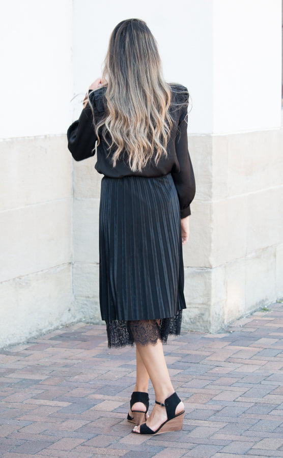 We are in love with our Pleated Lace & Chiffon Skirt! From the beautiful peek-a-boo lace to the rich colors of pleated chiffon, this beautiful skirt is simply perfect! It will be your go-to skirt for anything. From daytime to nighttime, to the party, it's that versatile!