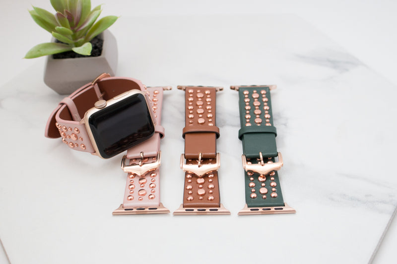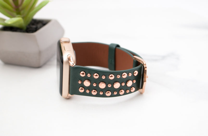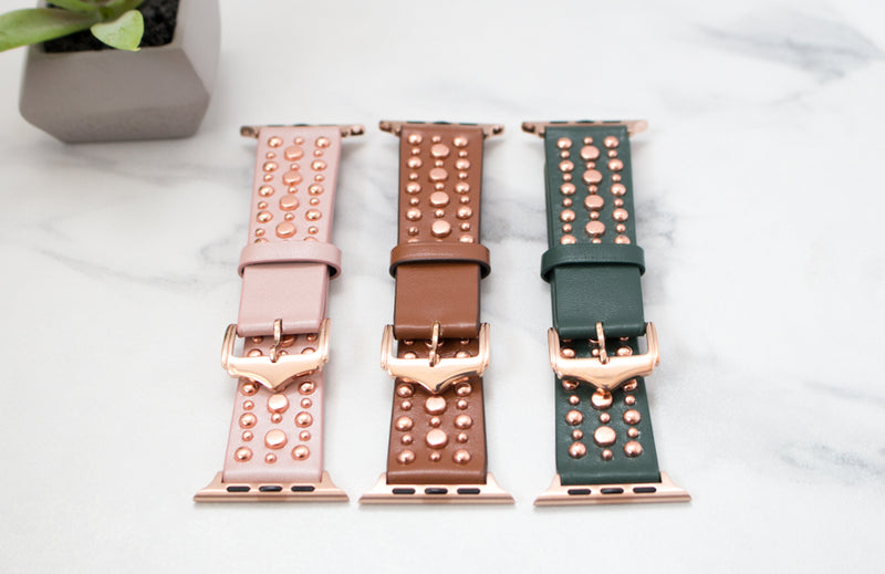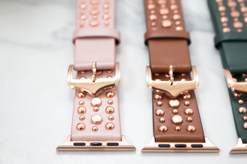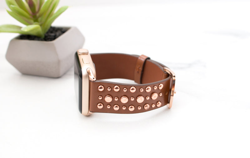 Wear your apple watch the hipster way with our amazingly hip Roxy Leather Studded Apple Band! These beautiful watch bands are made out of genuine leather and studs that give it that hip style you're wanting!