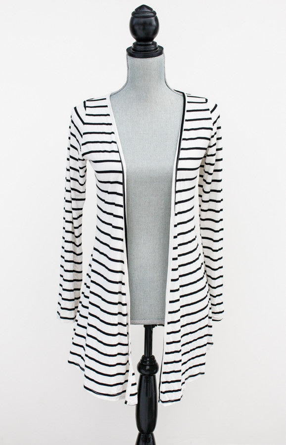Dress yourself in style with our beautiful Striped Cardigan! It's flattering slim fit and soft material will have you wanting to wear it with everything! It is simply perfect for any occasion!