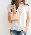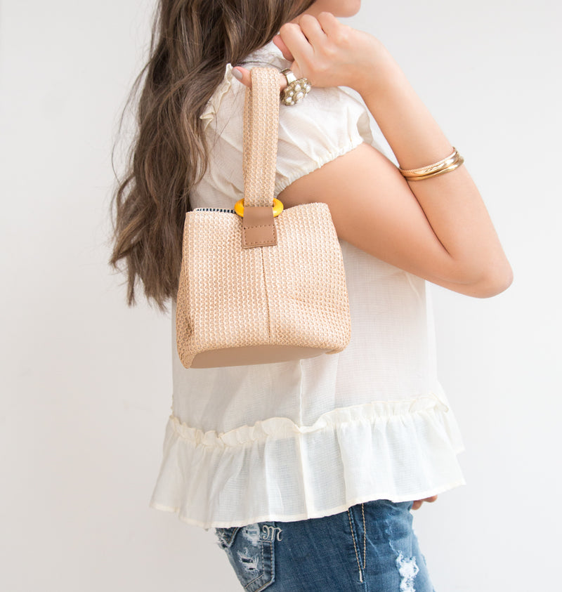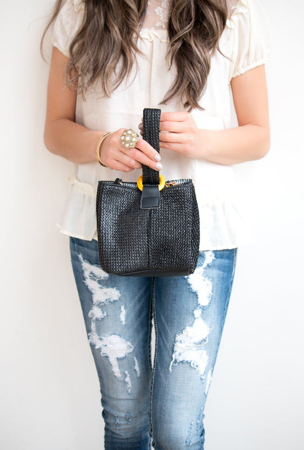 The Adele, our beautifully hip woven bucket handbag is a modern twist to our classic style! This stunning bag is perfect for your everyday outfit or dress it up for a night out! You can't go wrong with this beautiful handbag!