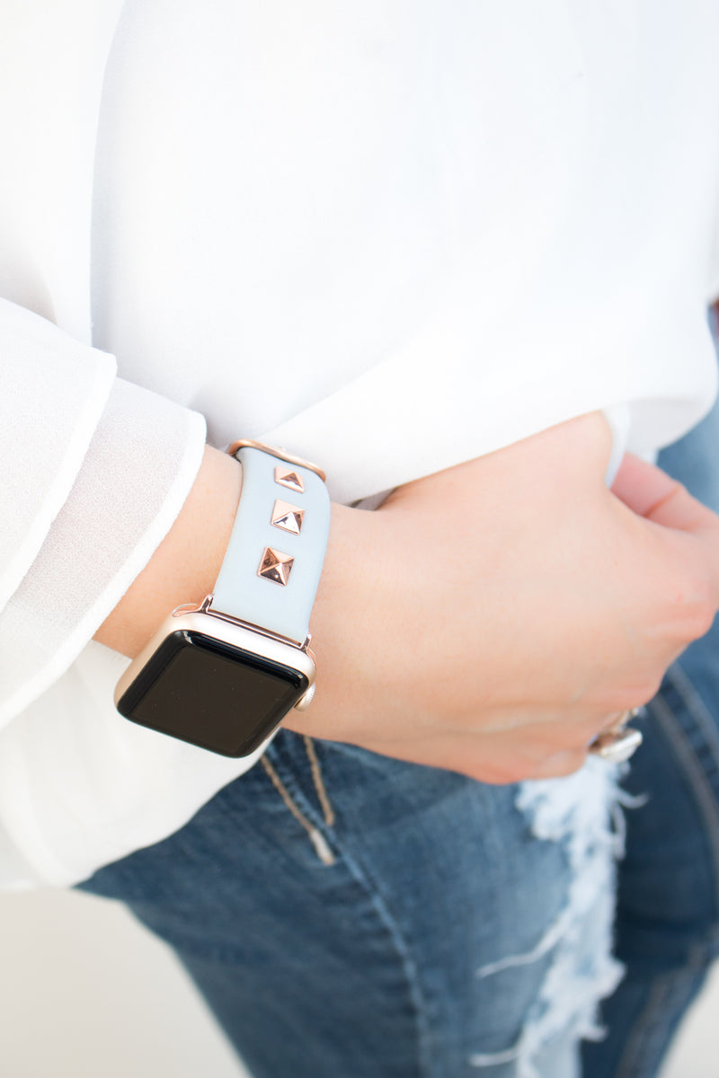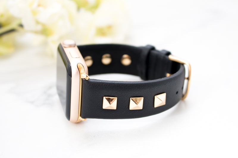 Wear your apple watch the hipster way with our amazingly hip Stella, Leather Studded Apple Watch Band! This beautiful watch bands is made out of genuine leather and studs that give it that hip vibe you wanting!