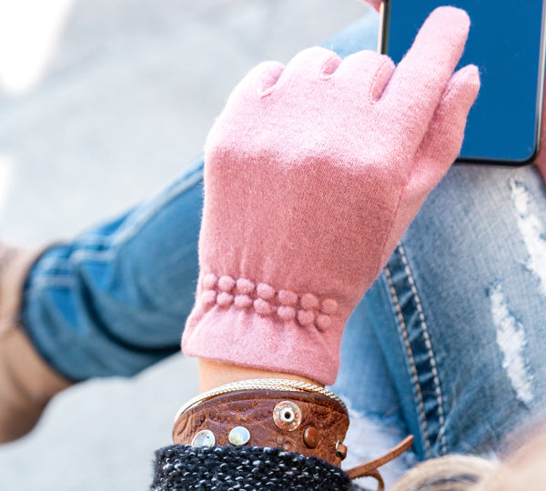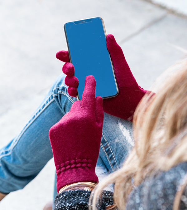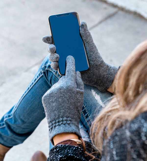 Dress your hands the hipster way this season with our Wool Blend Touch Screen Gloves! Made with a soft wool blend and gathered dot detailing... they are sure to complete your stylish look! These gloves will keep your hands and fingers cozy and warm while allowing you to use your smartphone and tablet at the same time!